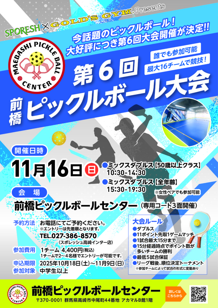 「第6回前橋ピックルボール大会」を開催することが決定しましたのでお知らせいたします!!